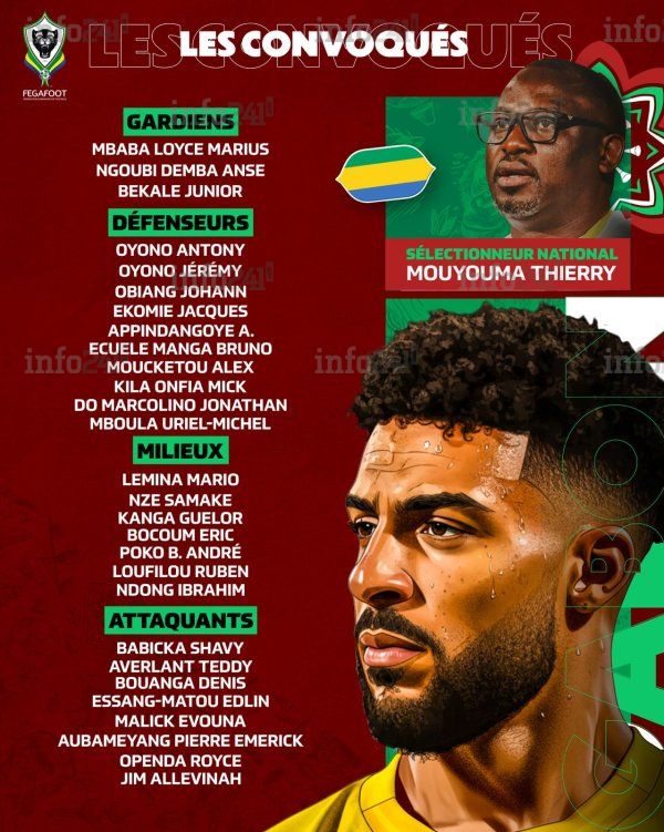 • Attaque : Huit attaquants, menés par Pierre-Emerick Aubameyang et Denis Bouanga. Mouyouma prend des risques sur la forme du moment avec l’inclusion de Shavy Babicka et Jim Allevinah (revenus de pépins physiques). Le vétéran Malick Evouna est également appelé pour son expérience.